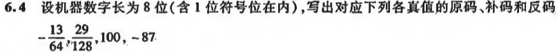 6.11 已知机器数字长为4位(含1位符号位),写出整数定点机和小数定点机中原码、补码和反码的全部形式,并注明其对应的十进制真值。
