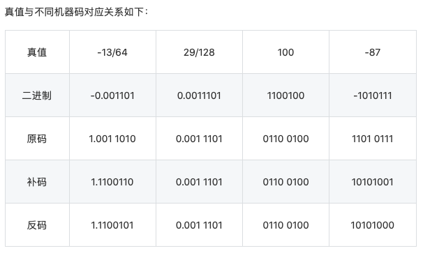 - 三种机器数的最高位均为符号位。符号位和数值部分之间可用“.”(对于小数)或“,”(对于整数)隔开
