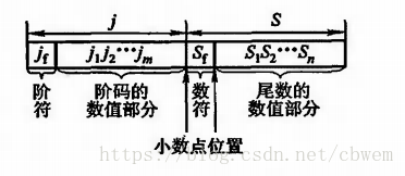 浮点数由阶码j和尾数S两部分组成。阶码是整数,阶符和阶码的位数m合起来反映浮点数的表示范围及小数点的实际位置;尾数是小数,其位数n反映了浮点数的精度;尾数的符号Sf代表浮点数的正负。