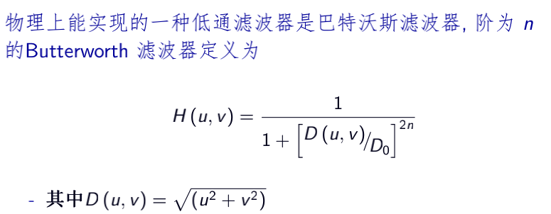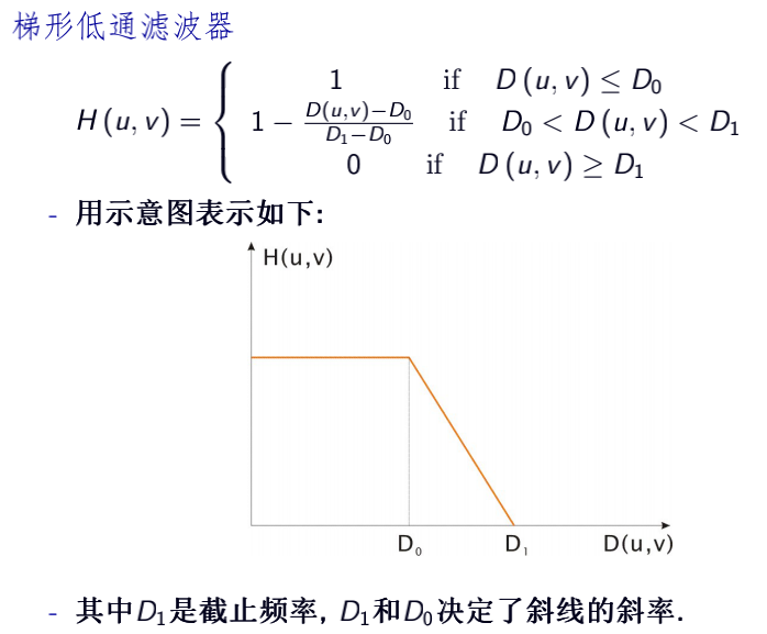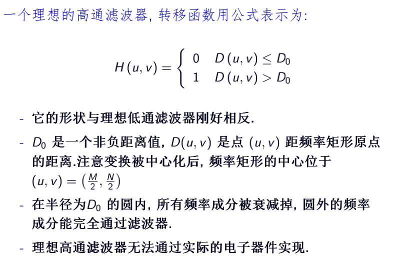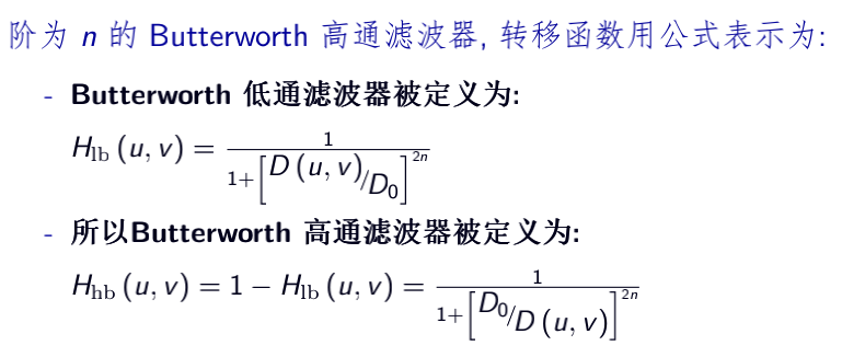 如果Hlp(u,v)是一个低通滤波器,对应的高通滤波器可以是Hhp(u,v)=1-Hlp(u,v)