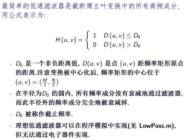 频率域中的低通滤波与空间域的平滑处理类似。