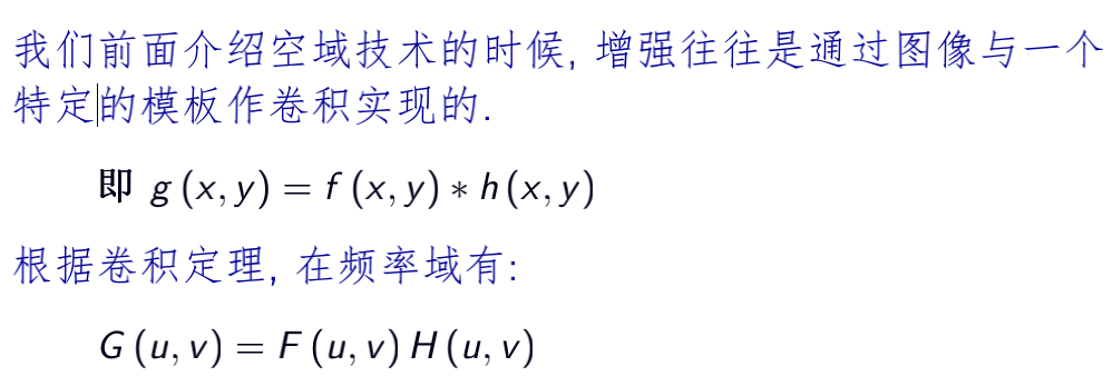 代表空间域的卷积相当于频率域的乘积。因此可以在频率域中直接设计滤波器,对信号进行加强。