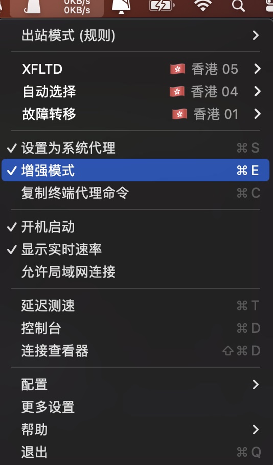 - Clash pro 中开启增强模式 TUN Mode,ClashX 里没有增强模式